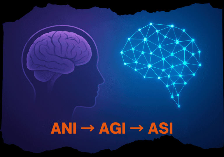 Discover how AI evolves from ANI to AGI to ASI and what these leaps mean for people and organisations in the next two decades.